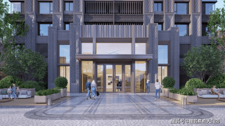 迎宾轴线:社区入口区域,礼仪府门+老洋房(入口大堂)+海派花园