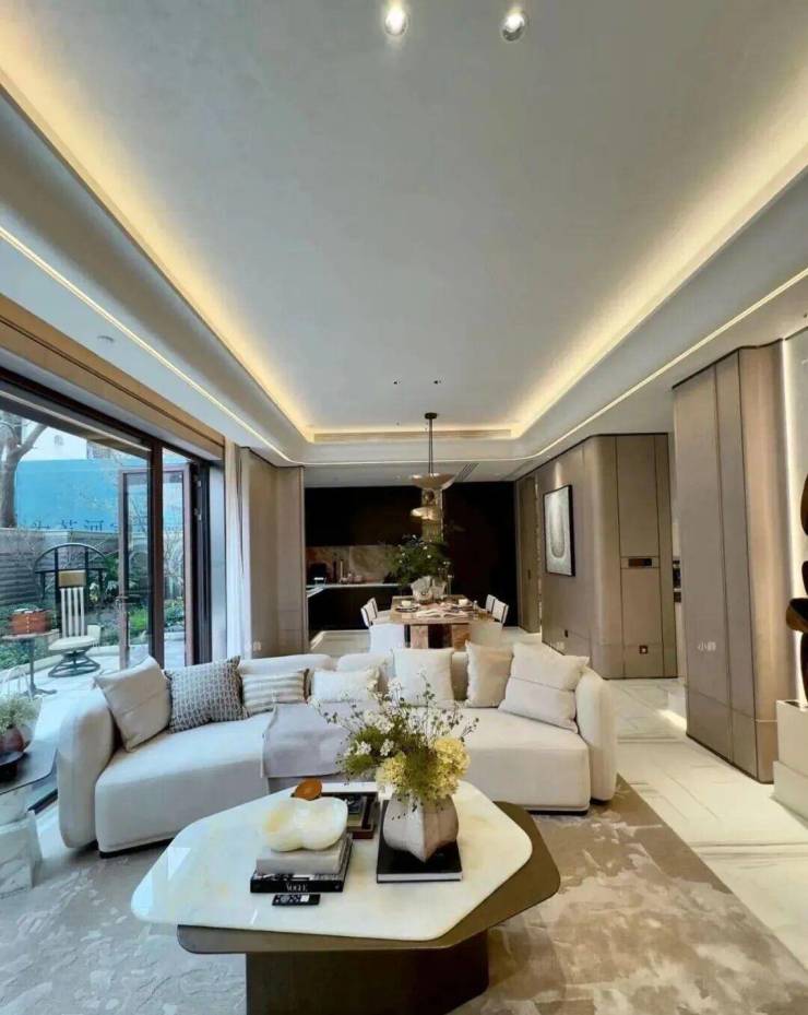 一楼 面向庭院全景大玻璃落地窗 真正意义上实现借景入室,是空间互融更是诗意盛放,客餐厅等空间集中于南侧于风景的相拥中宽享知味时光,至享生活浪漫。