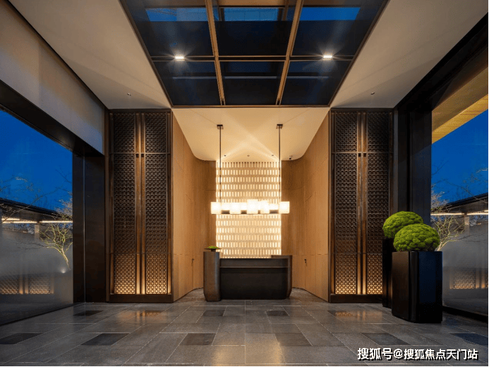 还未走进示范区,迎面而来的大门,就足以让人感受到项目的恢弘气势—— 35米长、6米高的超大尺度门堂,同区域内可谓是绝无仅有。一瞬间,东方美学背后所承载的历史厚重感,透过门堂瞬间击穿感官,让人不自觉升起对文化和历史的敬畏感。