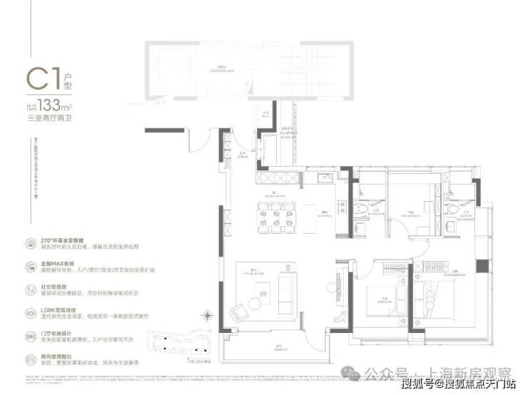 3.0代全面升级版,依托上海住宅新规,超高得房率+灵活空间是核心标签,上海新建改善盘主流形态。