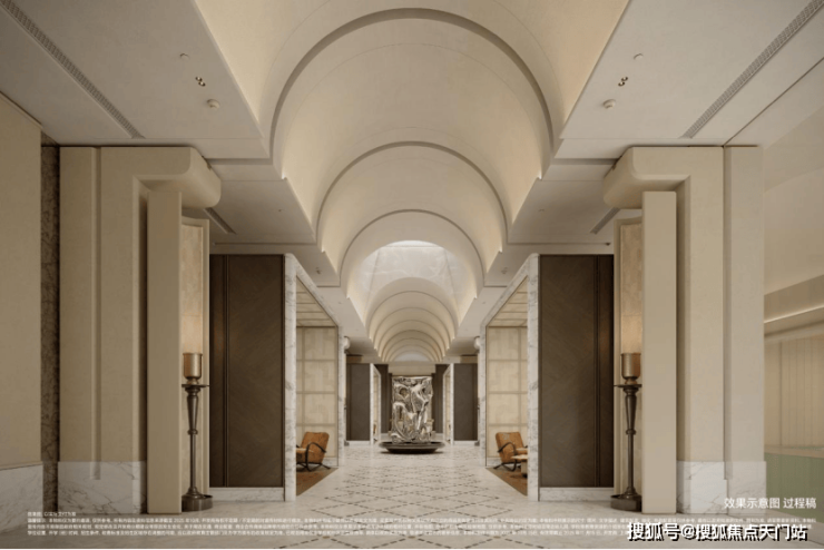 情绪光厅:作为连接地下停车场与会所核心区的过渡枢纽,完成从行车动线到休闲场景的情绪转场,让归家心境在此渐渐舒缓沉淀。
