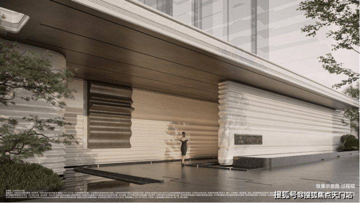 弧形仿石铝板勾勒立面层次,门厅、柱体、台面皆以柔弧过渡,不同材质成多倍投入以达最佳效果,打造温润高贵、典雅内敛的独有气质。