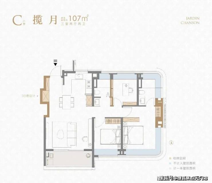 不夸张的讲,这个 建面约107㎡刷新了我对百平三房的新认知,据悉该户型或将申请专利,我认为实至名归!