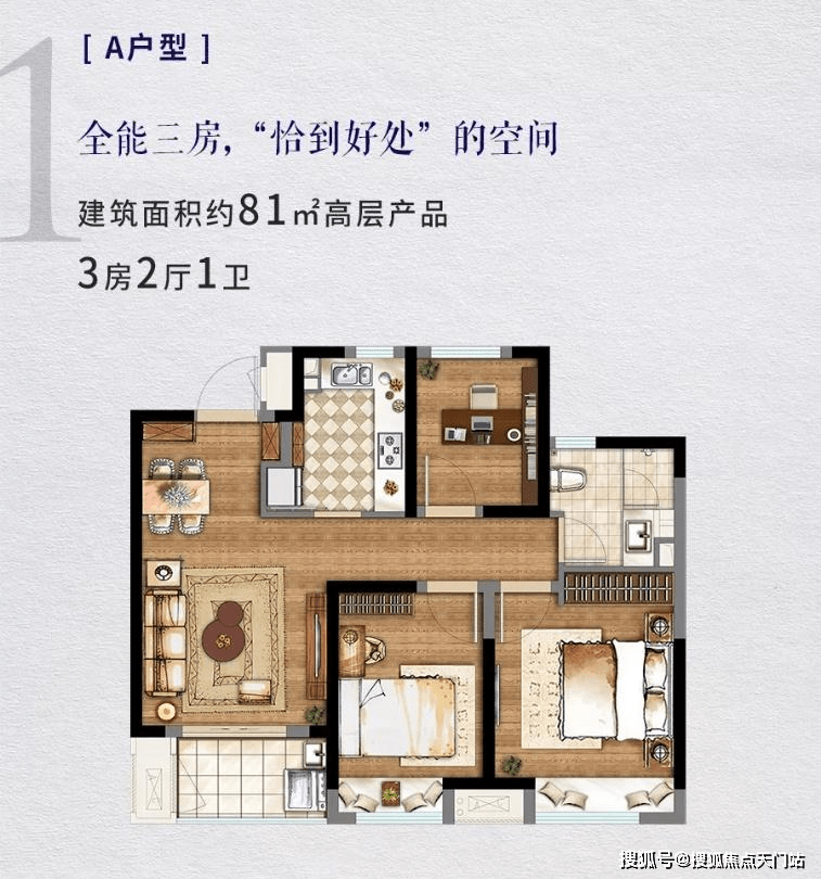 建面81平 3房2厅1卫 总价:300-320万