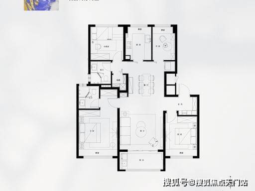 四叶草布局,互不干扰:四房分布四角,隐私性强、动静分区,三代同堂无干扰。