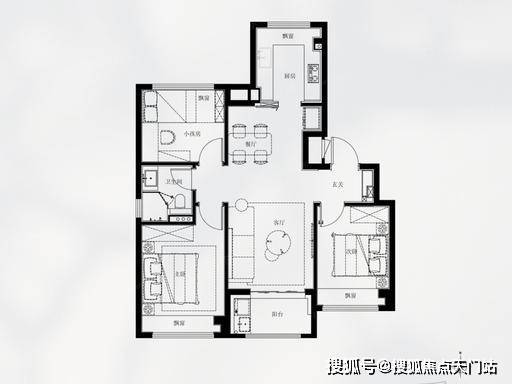 建面约 92㎡ 3 房 2 厅 1 卫:刚需入门款
