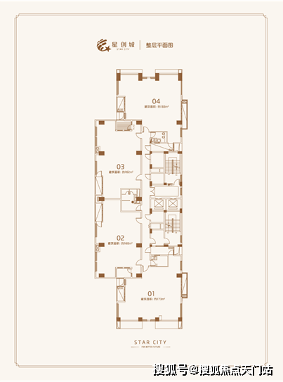 采光:01/04户型(三面采光)、02/03户型(南面采光)