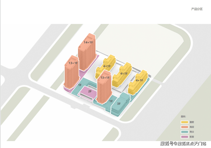 其中1#、2#、3#为3层叠加别墅,还有3幢13-14层高层住宅,高层产品首层架空。