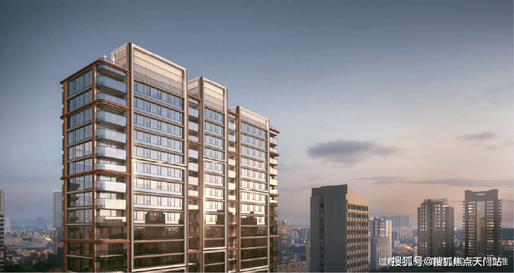 建筑立面 ,高层主体以 仿红砖陶板+古铜色铝板+白色石材+玻璃幕墙 的高标准结合,来完成建筑的美学表达。