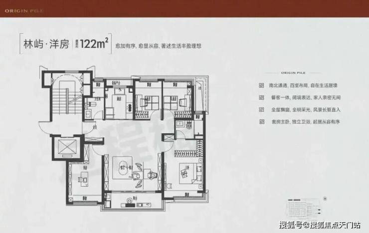 洋房平墅化:建面约108-124㎡精工洋房,以建面约124㎡四室洋房为例,超大餐客巨厅、独立主卧套房、独立书房,户型布局媲美平层别墅。可分可合厅房、全卧飘窗巧思,延伸日常生活的想象。