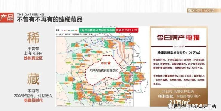 ·内中环内唯一在售小面积独栋,50年产权,通燃气。目前在售2栋,面积1000-1200平,总价6000万左右。