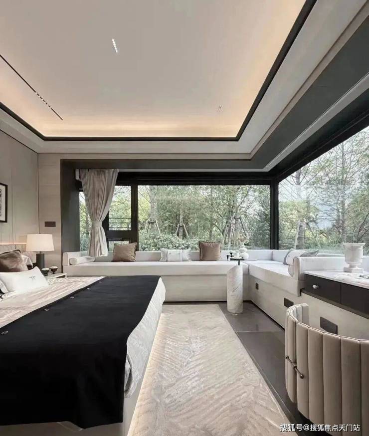 项目本次的边套设计了大量的飘窗、转角飘窗、主卧270度落地窗等设计,所以整个立面运用了大量的玻璃,构建出了非常极致的窗墙比。