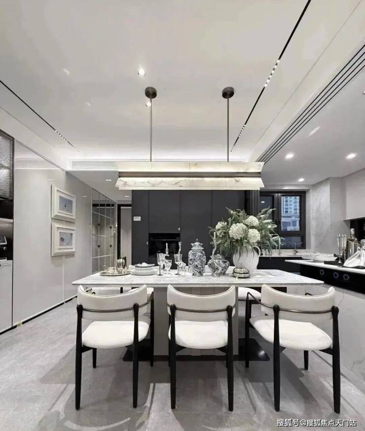 比如,厨房配了珍珠白吊柜、三组抽屉式拉篮合理搭配,调料架收纳、大容量踢脚抽、清洁用品收纳区,米面粮油、碗碟刀叉都可完美隐身。