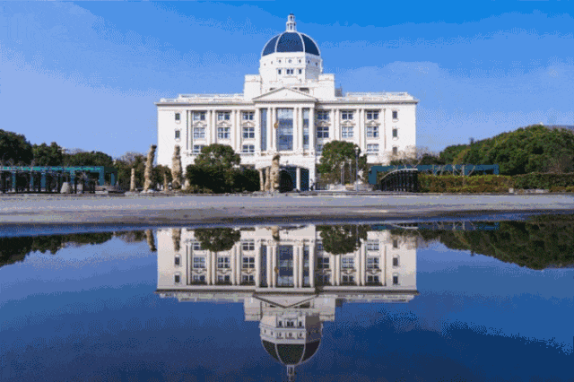 约100米长的私家礼道,两侧4米高景墙庄严夹道,整整齐齐的香樟树撑起"绿色的华盖"