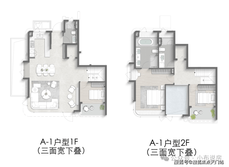 再来看项目的叠墅产品:约9.5米南向三面宽、独门独户设计,下叠享有约6.1米挑高地下室,上叠则配备超大露台,将墅居的空间尺度与功能延展性发挥到极致。