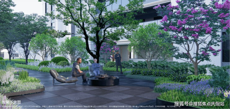4、下沉式庭院,通过乌桕树、溪流构建一处安静的栖息之境,业主可在这里尽情放空。