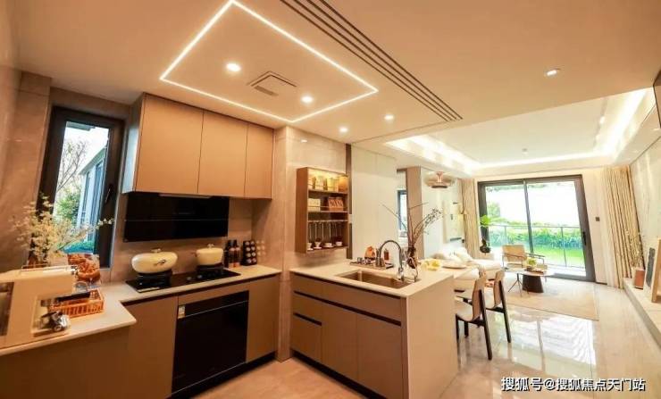半开放式厨房,打破了传统的全封闭设计,与餐厅无界相通,面朝客厅与阳台,形成S型流畅生活动线,也打破了居家生活的空间隔阂,无形之间,增强家人之间在日常时刻的交流与互动。