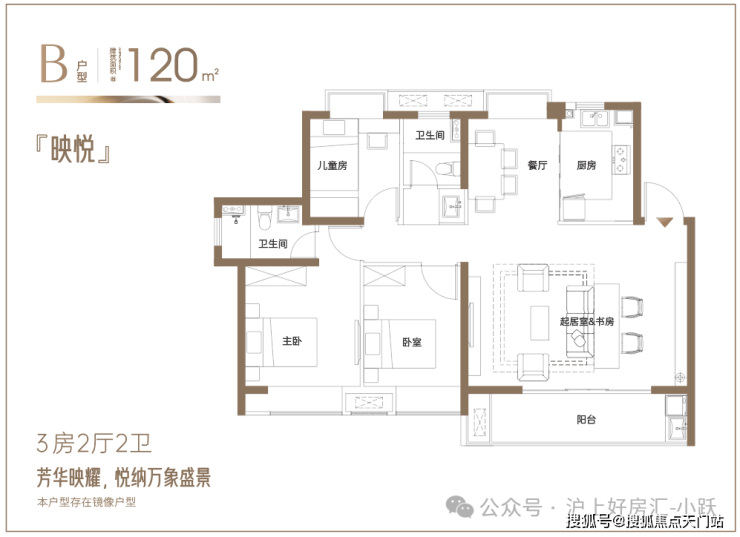 建面约120㎡改善3房:6.3米阔绰横厅