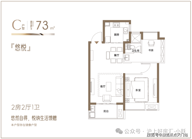 建面约73㎡悠然两房:悦纳生活馈赠