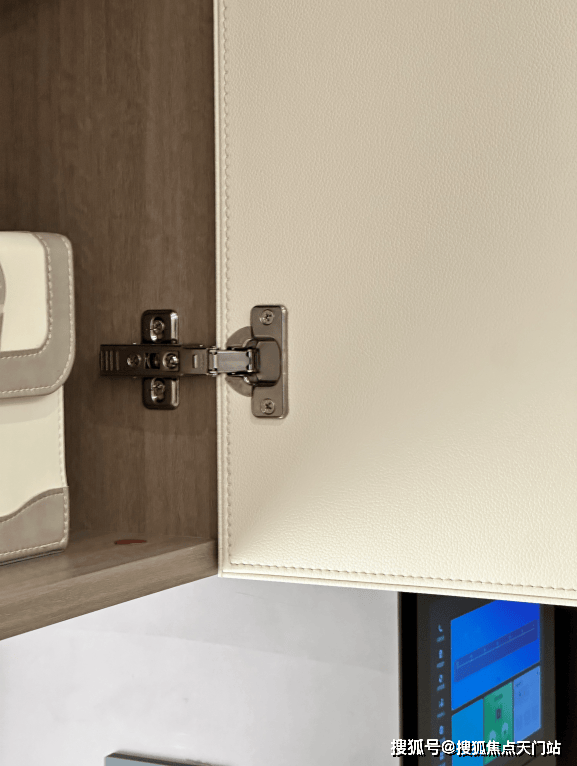 打开柜门,内外都是皮革包裹,质感进一步提升: