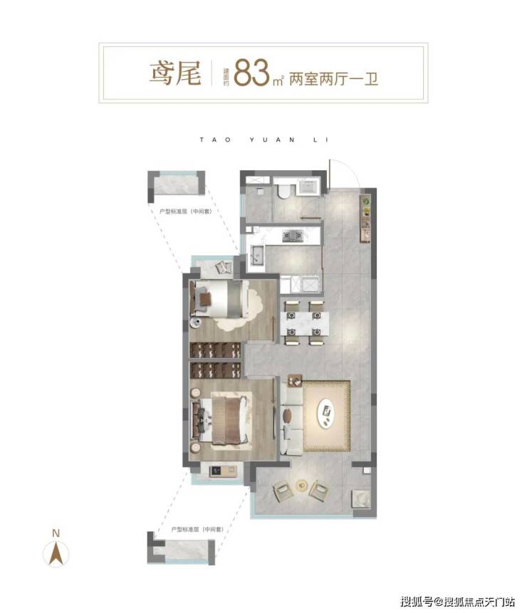 在售建面约83㎡2房,总价600万级;