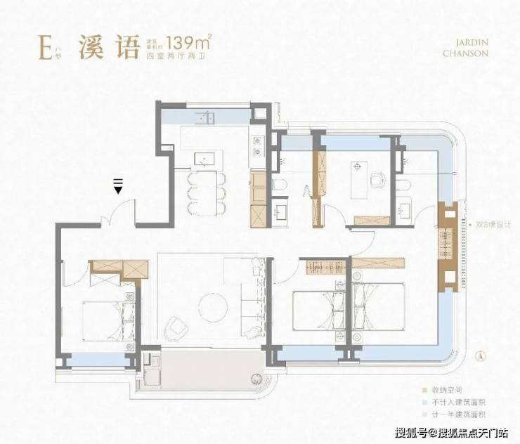 项目建面约139㎡4房则是集大成的终极改善户型。该户型是 独立电梯入户,保证了业主的私密性和尊崇感!不止是 四开间朝南,更是大宽厅设计,采光无敌。