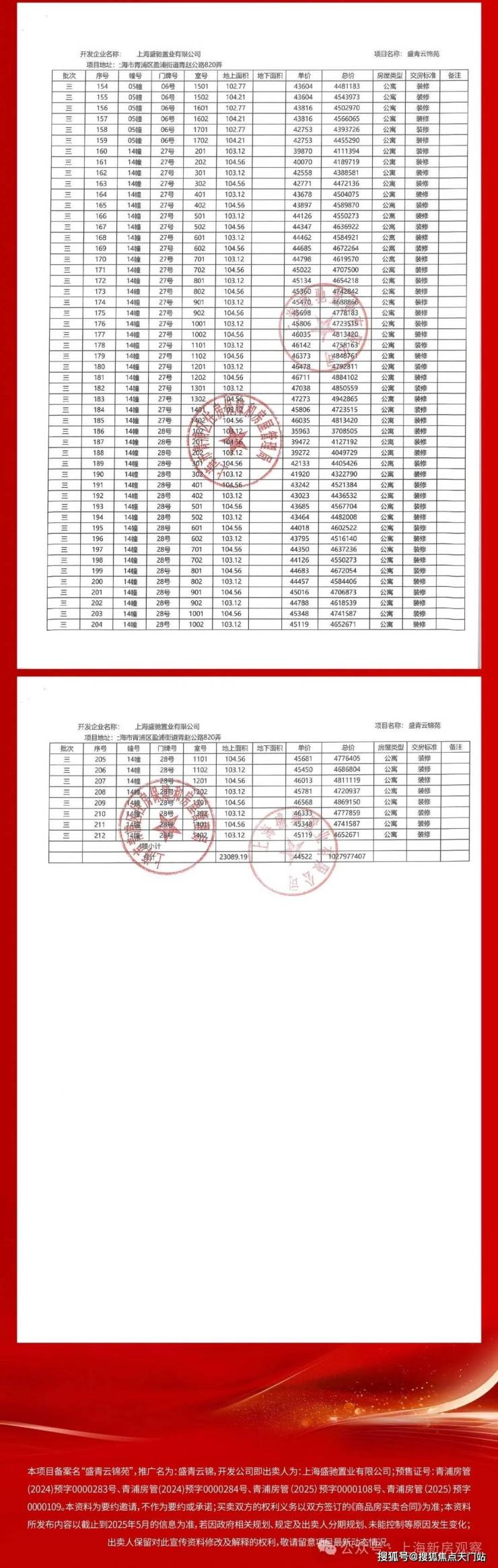 青浦新城「盛青云锦」加推212套建面约103-197㎡3-5房,均价44522元/㎡!