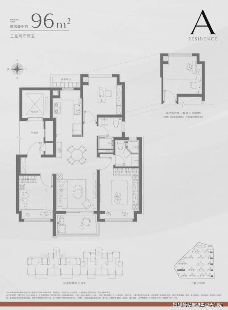 这个96㎡的户型,不仅实现了3房功能性一步到位,还有2卫配置!降低当下置业成本的同时,未来在二手市场也能抢占先机!