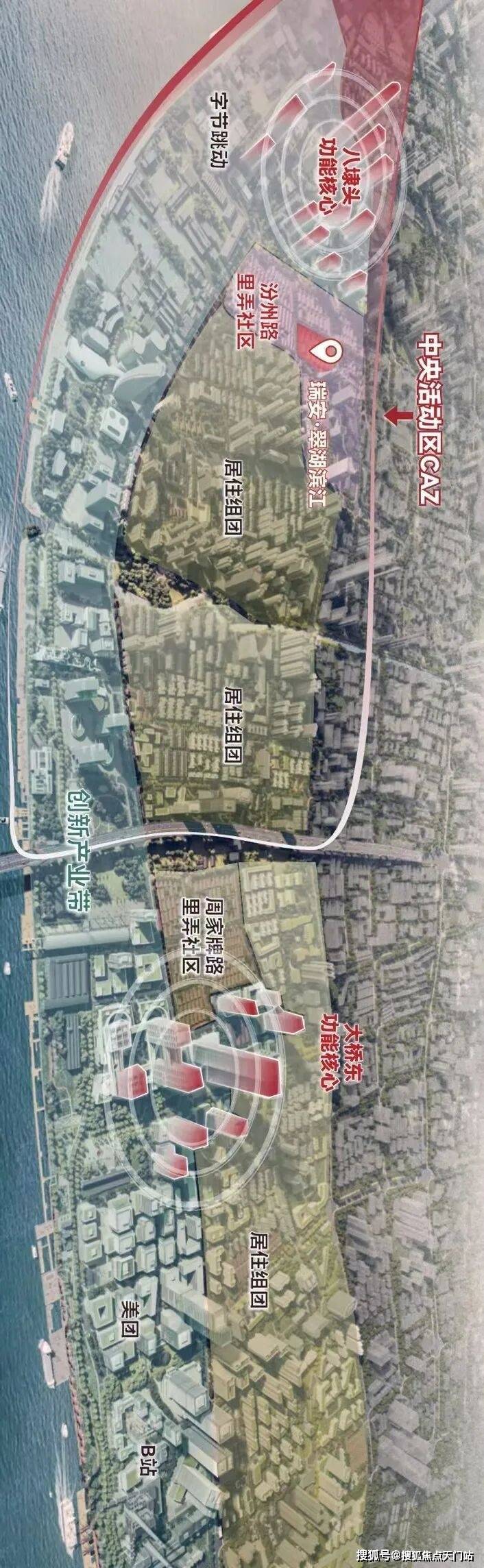 另外,八埭头地区未来还将通过空中步行连廊串联起轨交站点、商务楼宇、城市公园和滨江绿地,为行人提供便捷抵达滨江的步行路径和俯瞰滨江的观景视廊,同时将南、北两侧的滨江地区和大连路总部研发聚集区衔接起来,从而带动整个区域的价值提升及滨江沿岸对内部区域的辐射效应。