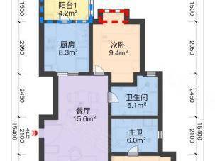 100㎡ 两房两厅两卫:南北通透、南向阳台、主卧套房;860-980 万