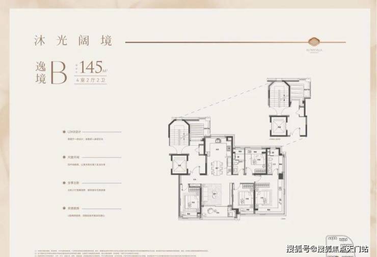 户型特点:4开间朝南,LDK一体化设计,南北通透。客厅面宽达4.3米,外接4.8米长阳台,采光通风俱佳。主卧带270°转角飘窗,主卫也有飘窗赠送。全屋飘窗设计,独立电梯厅,私密性与尊享感强。