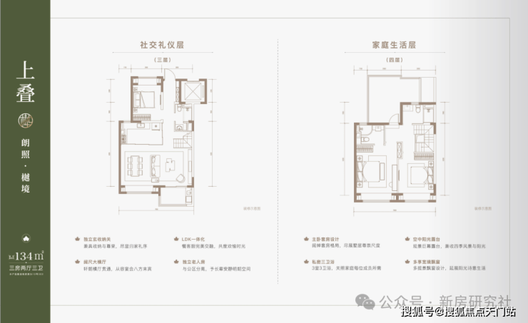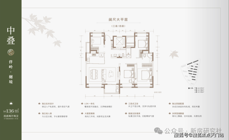 建面约137㎡下叠,四房两厅三卫全能格局,非常适合二娃家庭以及三代同堂。
