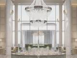 空间匠筑海派精奢美学,萃取嘉佩乐酒店式归家礼序,以低饱和高级灰基调融合室内外无界场景,全公区奢石铺装 (普拉达绿、莫奈灰等)与地下三层大堂珍稀石材组合,于细节处雕琢低调奢华的艺术归家场域。