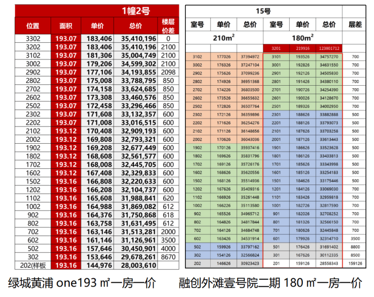 以及融创外滩壹号院二期180平、以及今年下半年三期的190平等;