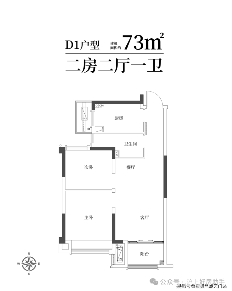 建筑面积约73㎡舒适两房一卫,年轻家庭的向往