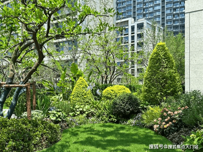 大乔木种植远离南侧窗户,结合草坪保证底层房源有良好视野和采光,同时通过地形设计与植物的有机结合保护业主私密性。