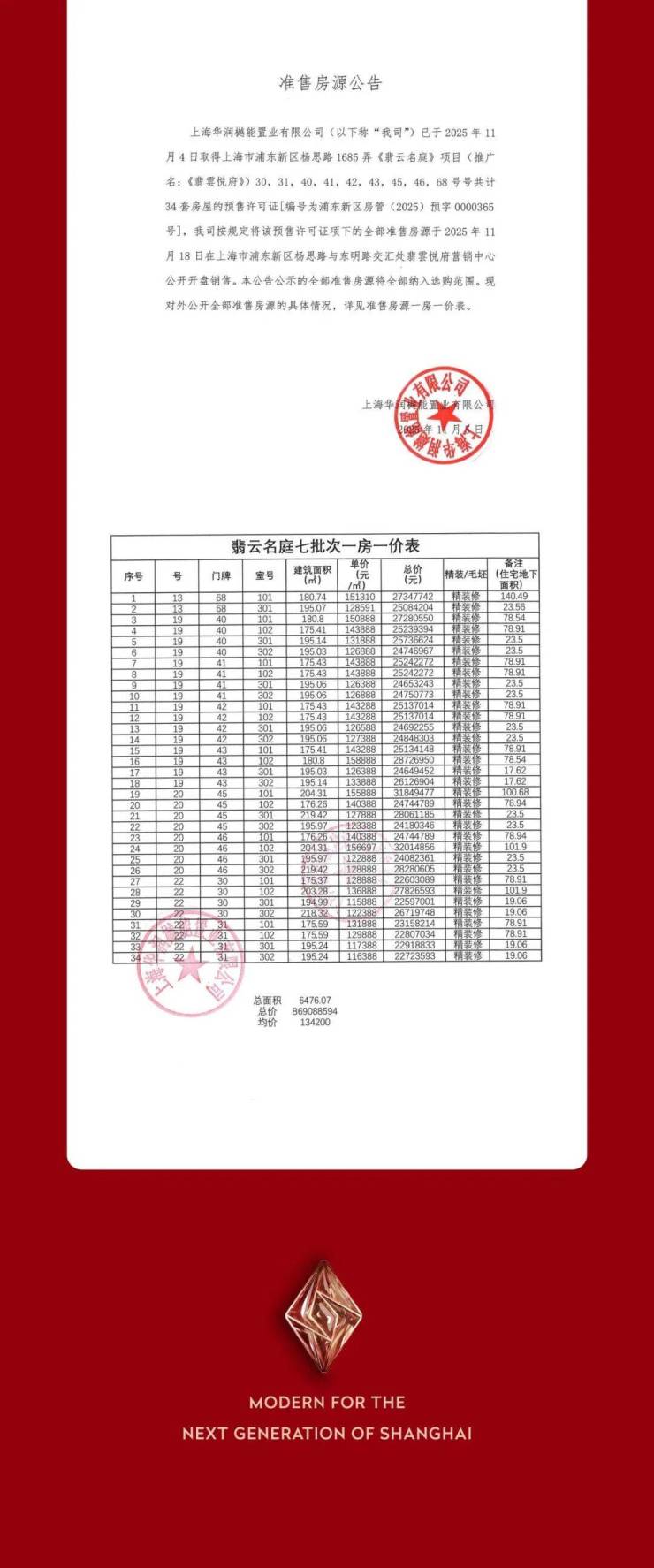 更值得一提的是,根据克而瑞数据,【 翡雲悦府】已然刷新行业高度—— 位列 2025年全国10万+均价销售套数第一,更拿下上海近10年10万+均价套数第一!