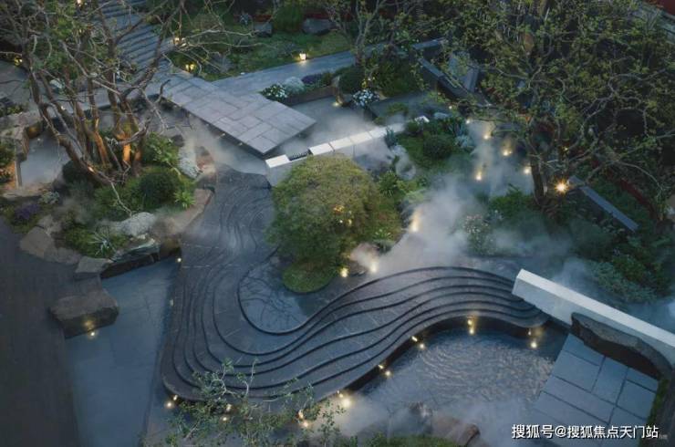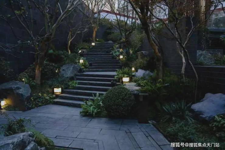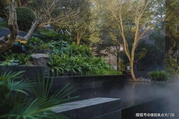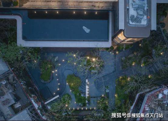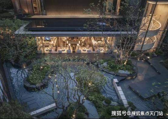 · 林涧溪谷:这片下沉秘境中,约300㎡镜面水畔点坐落其间,夜晚则有 伊朗白雪荧玉石灯照亮归途,成为与知己畅谈、与家人共聚的隐奢客厅