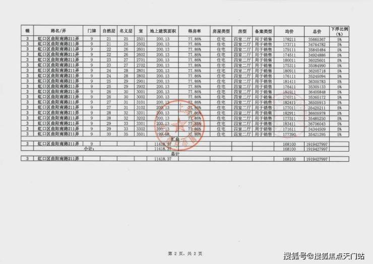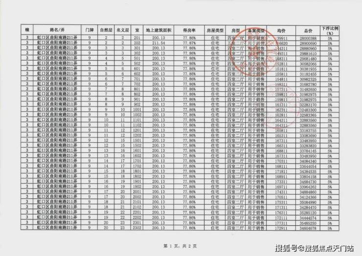 项目一房一价公布: