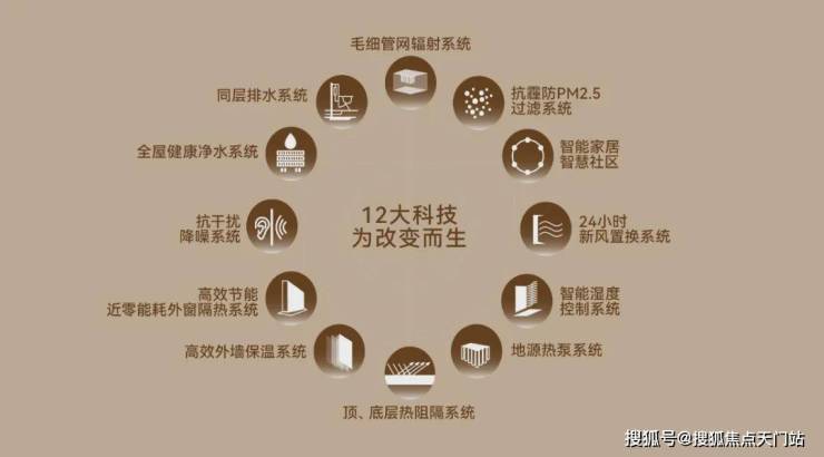 从“温度、湿度、空气、阳光、水、声音”六大基本生命元素延伸12大科技体系,实现“舒温、舒湿、舒氧、舒净、舒音”的居住环境