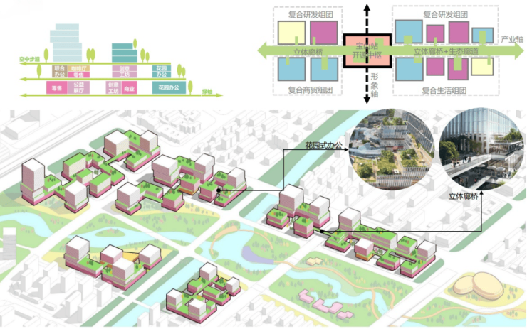 这座逐步崛起的未来之城,未来将重点发展商务办公、科研以及居住功能,规划有商务办公楼、生态住区、学校、公园、文化场馆、科创产业园区等业态。