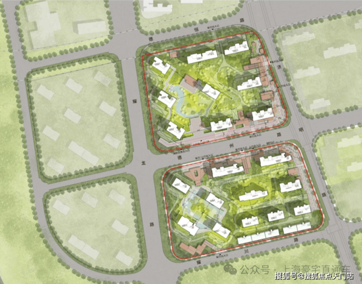 项目地面无车位,全人车分流,主要出入口位于南侧德州路,车行出入口分别位于德州路、济明路、德恒路;所有住宅楼栋首层全架空,设置有大面积的下沉式庭院、地下会所以及风雨连廊!