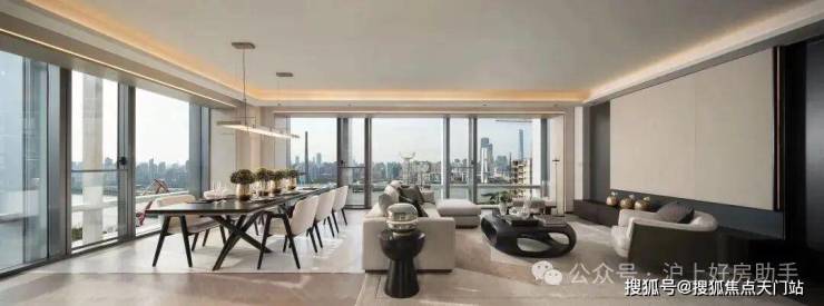 建筑方面项目采用上海独一无二的“类幕墙设计”立面,再加上平推窗与立柱一体化设计,以及超大尺度的落地玻璃窗,搭配“开放式铝板设计”。将大师级的灵感和理念做到了全方位落地还原!