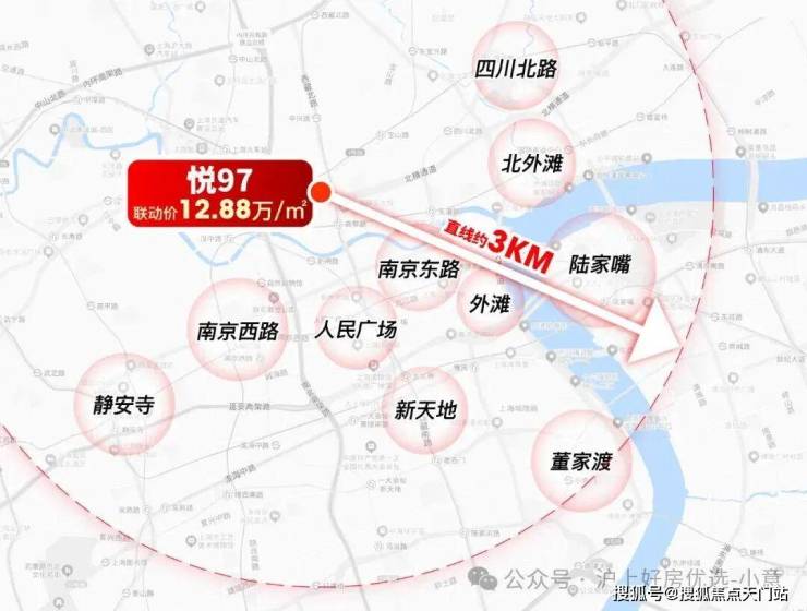 如果不拘泥于步行,视角放大到3公里半径,范围内江涵盖陆家嘴、人民广场、静安寺、南京西路、南京东路、外滩、新天地等城市CBD,上海几乎所有的高能级城市资源都在悦97业主的生活场域之内,这一点也是徐汇滨江难以比拟的!