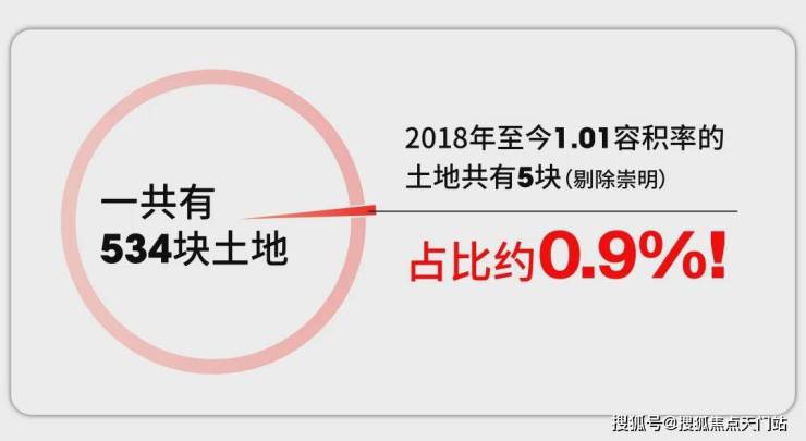 2018年至今上海只有12块约1.01容积率的土地出让。如果去掉遥远的崇明,那一共只有5块用地。