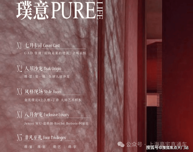 金茂·璞元为未来业主量身定制璞意荟PURE LIFE四大私属尊享权益,涵盖自然、艺术、健康、品味的全维度雅致享受,通过璞艺、璞宴、璞思、璞享为载体,集萃全球高定跨界资源,为业主带去返璞归真的东方美学生活体验
