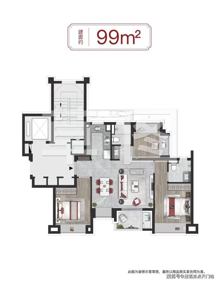 而项目首开将推出建面约99-145㎡3-4房,以及少量建面约165-175㎡叠加别墅产品。