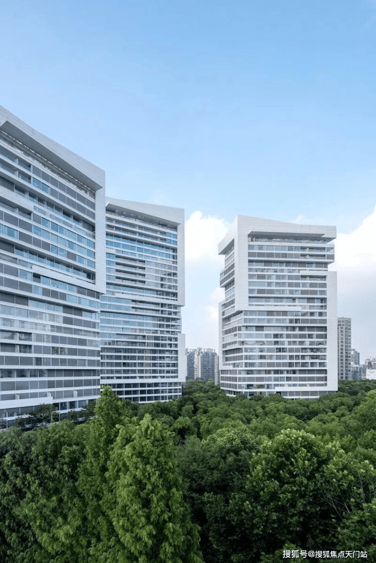 整个社区都是绿色森林,树海环抱,连底层都挑空6~9米,种植绿色,