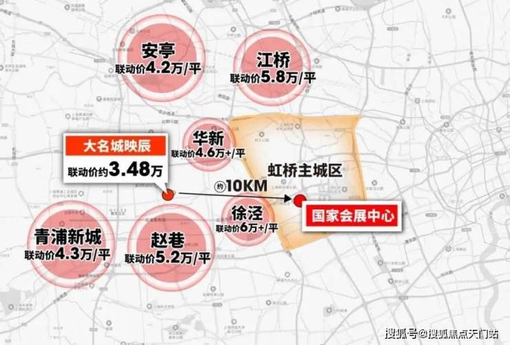而项目联动价只有约3.48万/㎡,入手门槛远远低于周边板块,如果预算相对有限,但工作在虹桥商务区,或者想有便捷自驾条件,那项目非常适合。