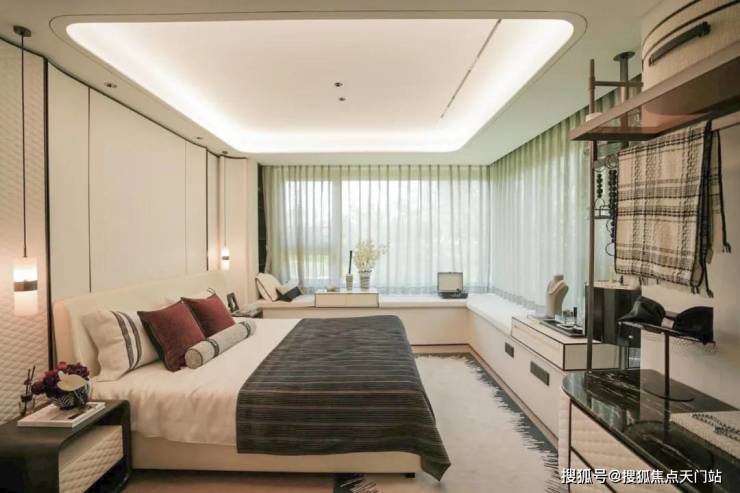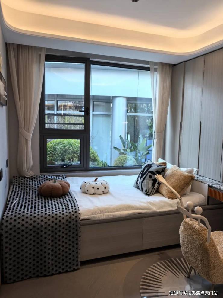 更为难得的是,该户型标配了全屋飘窗,主卧更是拥有270°转角飘窗,拓宽室内景观视野的同时,增加了实际空间使用率,加上三玻两腔系统窗隔音,在欣赏窗外景色的同时,也不会被噪音打扰。